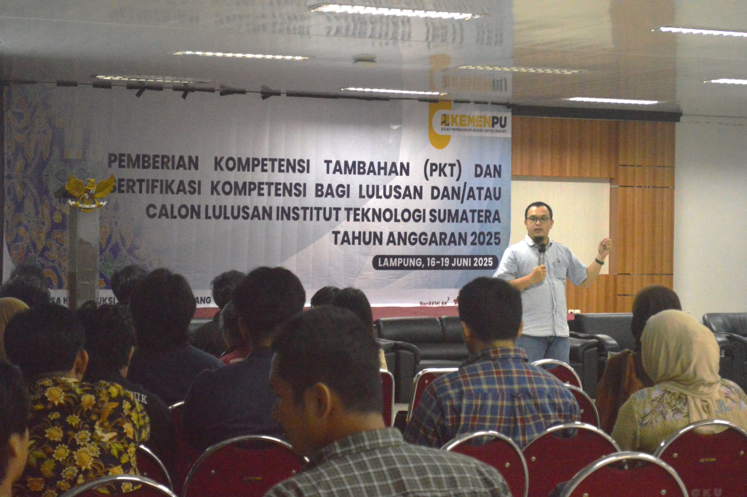 SIPIL NEWS– Institut Teknologi Sumatera (ITERA) melalui Program Studi Teknik Sipil bekerja sama dengan Balai Jasa Konstruksi Wilayah II Palembang menyelenggarakan kegiatan Pemberian Kompetensi Tambahan (PKT) dan Sertifikasi bagi lulusan dan/atau calon lulusan Teknik Sipil ITERA Tahun Anggaran 2025. Kegiatan ini dilaksanakan pada 16 hingga 20 Juni 2025 secara luring di Aula Gedung E ITERA dan juga daring melalui Zoom Meeting.